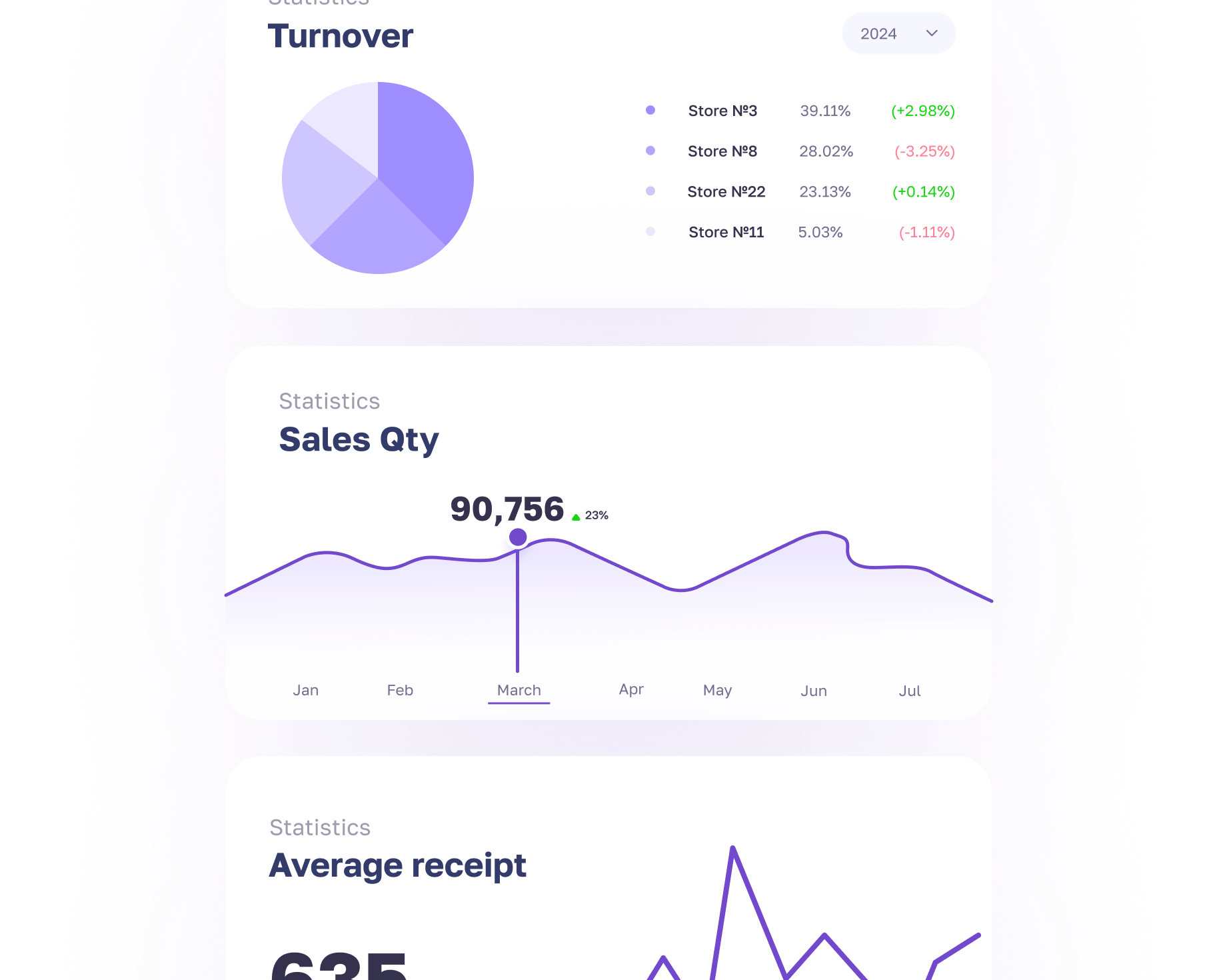 Datawiz offers 130 ready-made metrics that allow you to analyze data from the first day of use. You get access to key metrics that give you full control over your chain operations and allow you to see the big picture.