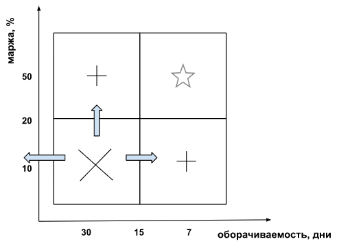 Полезным будет формирование квадранта показателей оборачиваемости:
