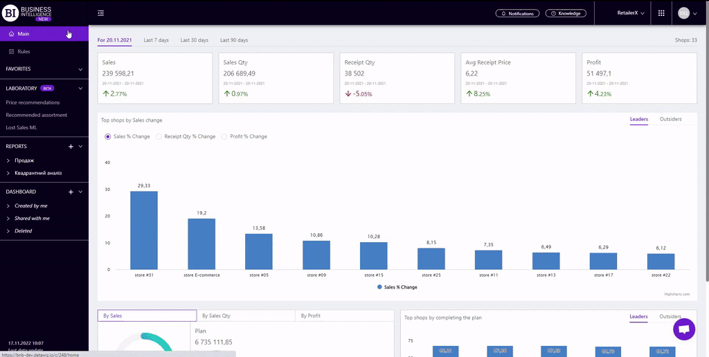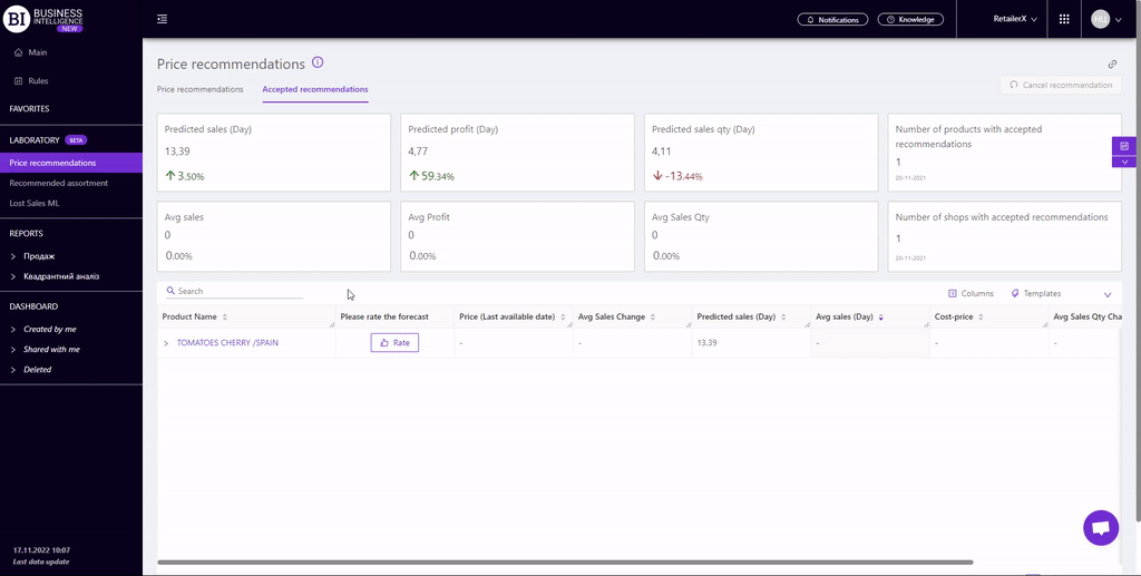 The main goal of creating the "Laboratory" section is to get feedback (rating and/or recommendations) from users and improve new reports according to the current needs of retailers.