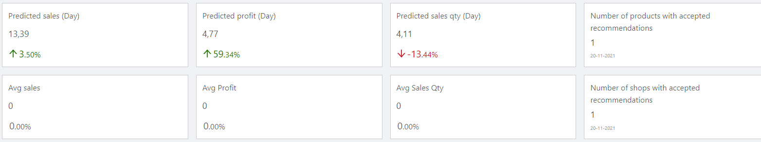 Note! You can track the change in sales according to the accepted recommendation starting the next day after uploading the data to the service.