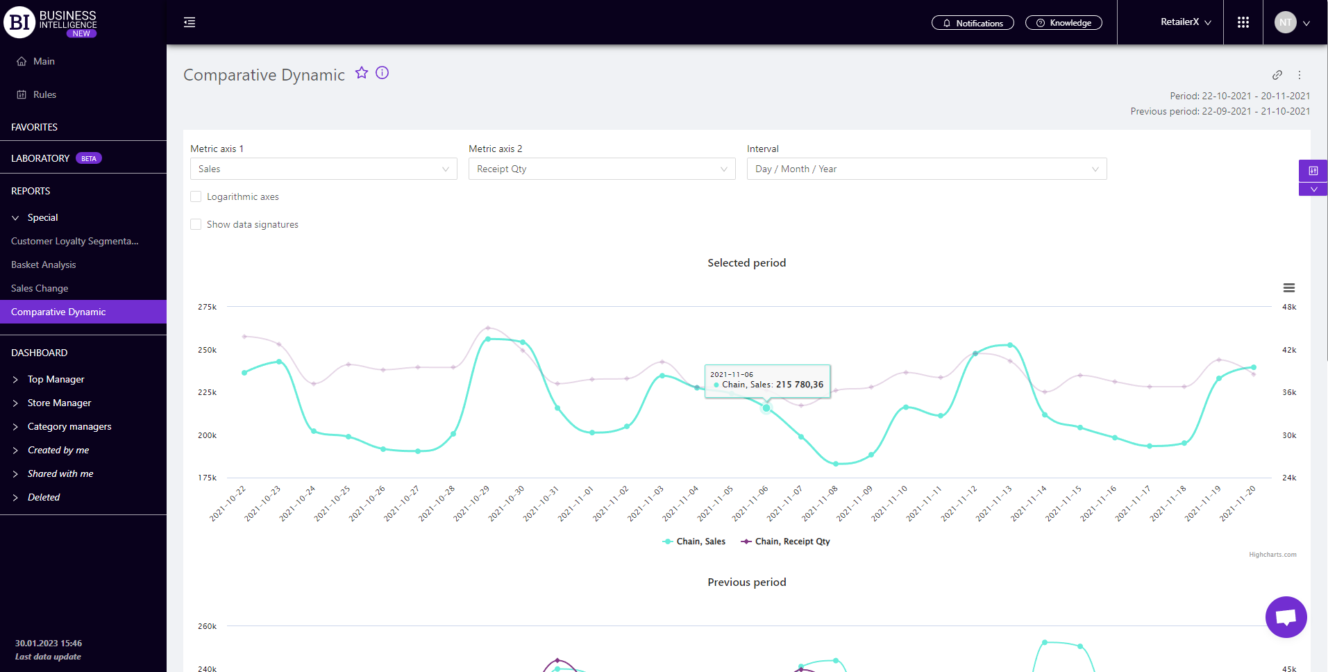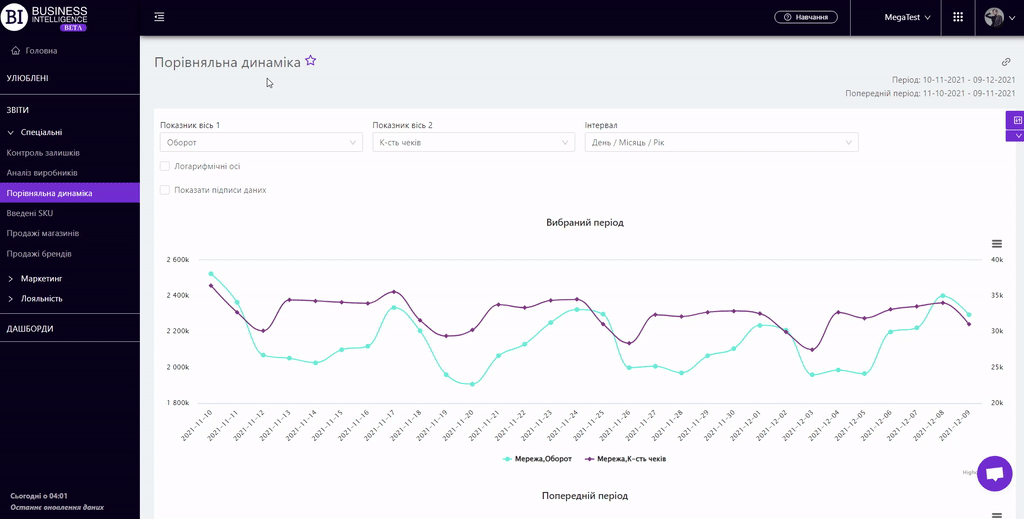 Brand salesStore cardProduct CardBasket AnalysisQuadrant analysisProducers analysisPlanogram EfficiencyLost SalesSales ChangeCategory managersSuppliers salesMarkers comparisonCategory CardProducts salesStores salesCategories salesStock MonitoringMainUnsaleable productsPrediction of OoS24-Hour AnalysisProducts movementEffectiveness of сashiersProducts for adjustmentPOS-terminal TrafficSales PlansPromotion AnalysisNew SKUEffectiveness of Loyalty ProgramPromo CardRFM - analysisStatistic of Loyalty ProgramCustomer Loyalty SegmentationLoyalty CardComparative DynamicsReceiptsCOMPARATIVE DYNAMICS