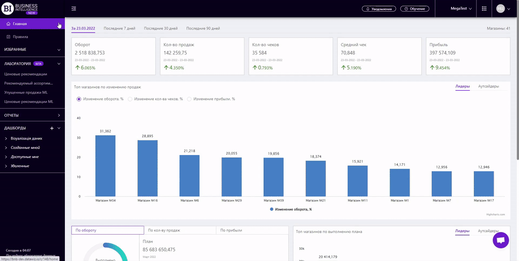 Лаборатория - модуль отчетов на основе AI на сервисе Datawiz BI