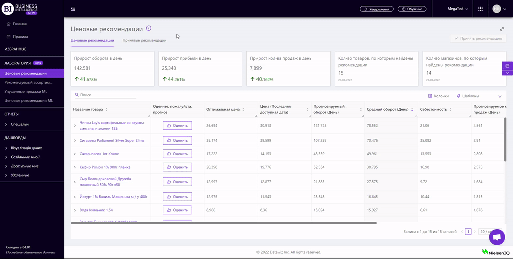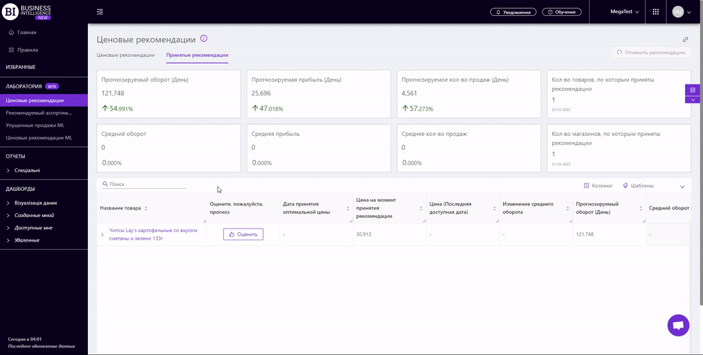 Главная цель создания блока "Лаборатория" - получить обратную связь (оценку и/или рекомендацию) от пользователей и усовершенствовать новые отчеты в соответствии с актуальными потребностями ритейлеров.
