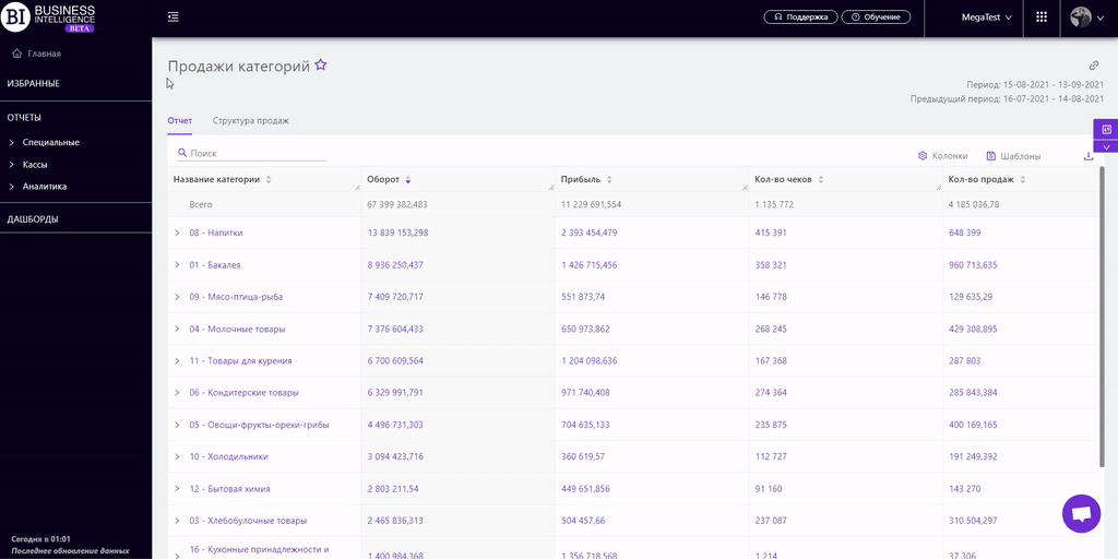 Продажи брендовКарточка магазинаКарточка товараАнализ корзинКвадрантный анализАнализ производителейЭффективность планограммУпущенные продажиИзменения продажКатегорийные менеджерыАнализ поставщиковСравнение маркеровКарточка категорииПродажи товаровПродажи магазиновПродажи категорийКонтроль остатковГлавнаяТовары на выводПрогноз OoSПочасовой анализДвижение товаровЭффективность кассировТовары для переучетаПроходимость кассПланы продажАнализ акцийВведенные SKUЭффективность программы лояльностиКарточка акцииRFM - анализСтатистика программы лояльностиСегменты клиентов программы лояльностиКарточка клиента ПЛСравнительная динамикаЧекиКАРТОЧКА КАТЕГОРИИ