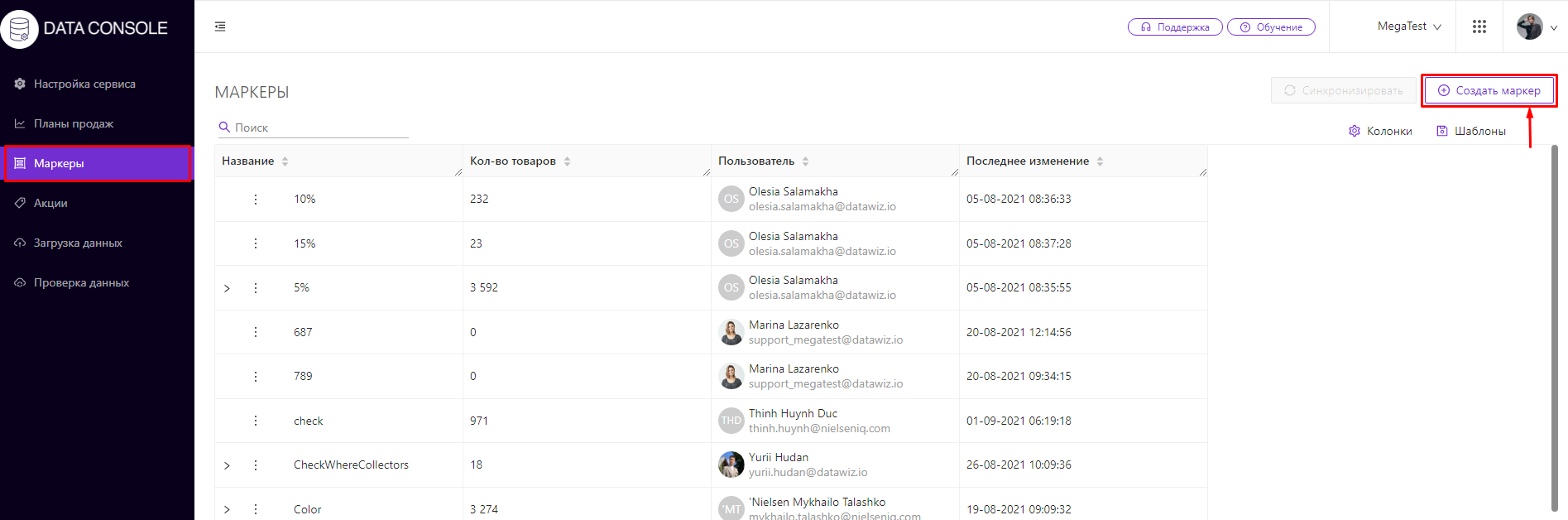 Создавать и редактировать маркеры можно в решении Data Console. Подробнее об этом описано в разделе туториала DC - "Маркеры".