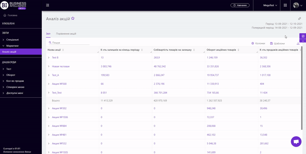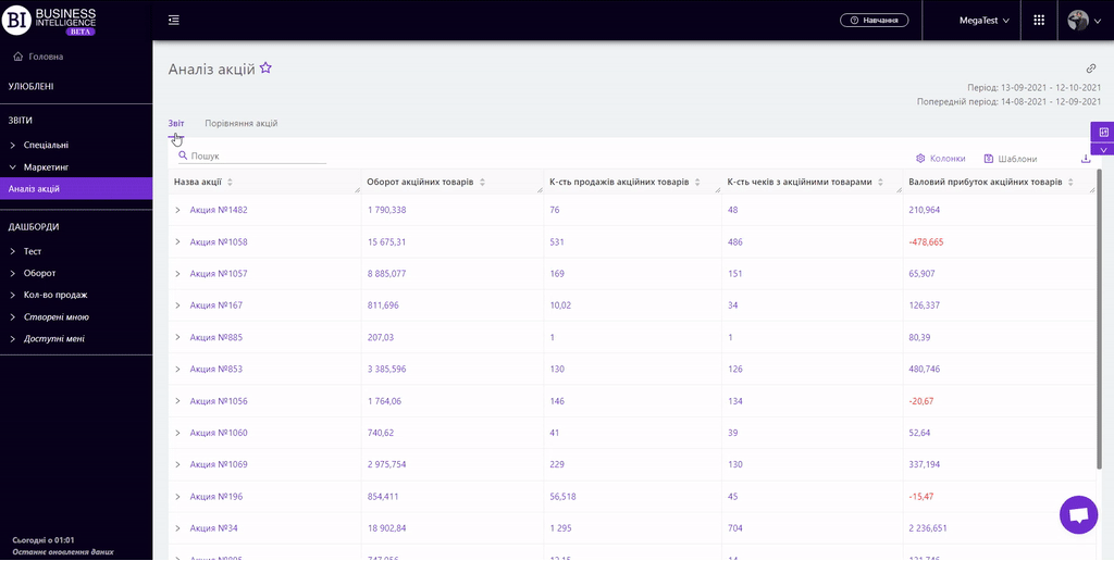 Продажі брендівКартка магазинуКартка товаруАналіз корзинКвадрантний аналізАналіз виробниківЕфективність планограмВтрачені продажіЗміни продажівКатегорійні менеджериАналіз постачальниківПорівняння маркерівКартка категоріїПродажі товарівПродажі магазинівПродажі категорійКонтроль залишківГоловнаТовари на виведенняПрогноз OoSПогодинний аналізРух товарівЕфективність касирівТовари для переоблікуПрохідність касПлани продажівАналіз акційВведені SKUЕфективність програми лояльностіКартка акціїRFM - аналізСтатистика програми лояльностіСегменти клієнтів ПЛКартка клієнта ПЛПорівняльна динамікаЧекиАНАЛІЗ АКЦІЙ